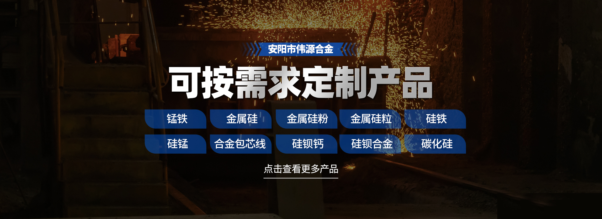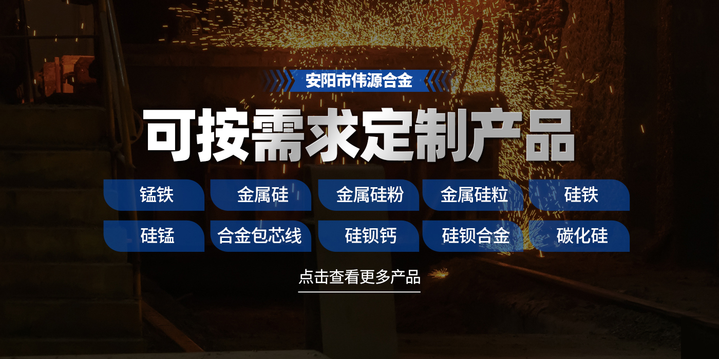 安陽市偉源合金有限公司是從事鐵合金、耐火材料、硅制品加工銷售的廠家。主要產品有:錳鐵、 金屬硅 、 金屬硅粉、 金屬硅粒、 硅鐵、 硅錳、 合金包芯線、 硅鋇鈣、 硅鋇合金、 碳化硅、 硅碳合金球、 化鋁硅、 硅微粉、 硅鐵粉、 鋁鎂鈣等,我公司產品質量穩定可靠,均可按用戶要求進行品質保證,現貨供應!我們成立以來,堅持“以質量求生存,以誠信求發展,以科技求效益”的經營理念。隨著公司的快速發展,我們